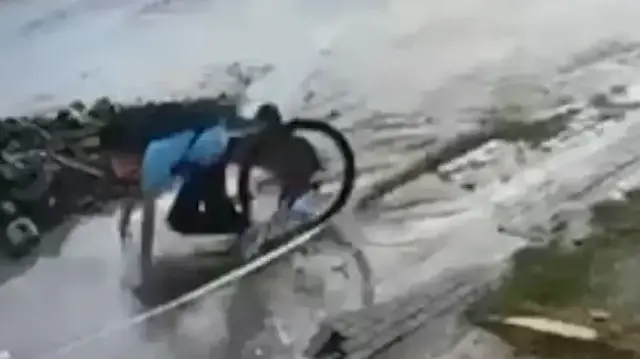 Hatay'da bisikletli çocuğun su birikintisine düştüğü anlar kameraya yansıdı