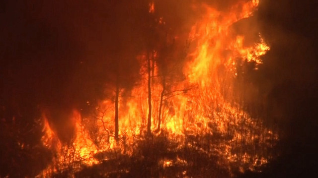 İzmir'in Menderes ilçesinde öğle saatlerinde başlayan orman yangını, dron ile havadan görüntülendi. Yangına 11 uçak, 27 helikopter, 281 arazöz ve bin 113 personel müdahale ediyor.