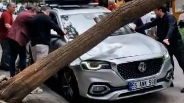 Samsun'da yol kenarındaki ağaç kökünden koparak devrildi. Ağacın üzerine düştüğü, Mustafa Kocaman'a ait park halindeki 55 ANK 590 plakalı otomobilde hasar oluştu. Çevredekilerin haber vermesi üzerine bölgeye itfaiye ekipleri sevk edildi. Büyükşehir Belediyesi İtfaiye Daire Başkanlığı ekipleri, ağacı devrildiği yerden kaldırmak için çalışma başlattı.