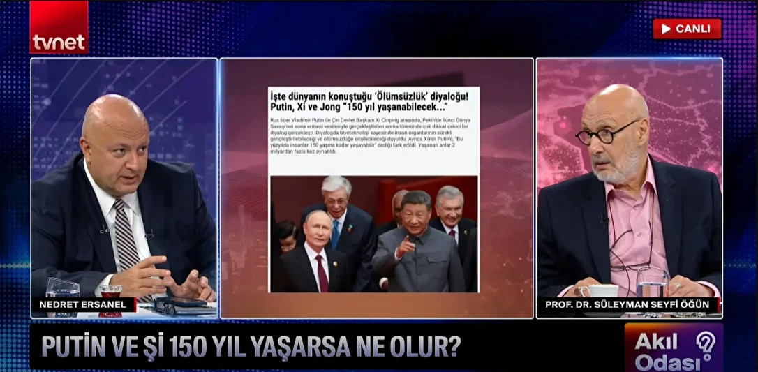 Yeni Şafak Yazarı Süleyman Seyfi Öğün, Rusya Devlet Başkanı Putin ile Çinli mevkidaşı Cinping'in '150 yıl yaşama, ölümsüzlük' sohbetine ilişkin değerlendirmelerde bulundu. Genetik ve biyoteknolojideki ilerlemelerin insan ömrünü uzatma potansiyeli olduğunu vurgulayan Öğün, "Yaşlanma karşıtı projeler hız kazanıyor. Ancak tüm bu süreçler şeffaf değil; kapalı kapılar ardında, oligarşik yapılar içinde yürütülüyor. Bazı liderler bunun kokusunu alıyor." dedi. Geçmişte aşılar sayesinde insan ömrünün uzadığını fakat günümüzde aşıların insanın bedenine ve zihnine muazzam bir müdahale potansiyeli taşıdığından örnek veren Öğün, büyük sermaye sahiplerinin de bazı şeyler denediğini ya da bazı insanlar üzerinde denenmesine izin verdiğini belirtti.