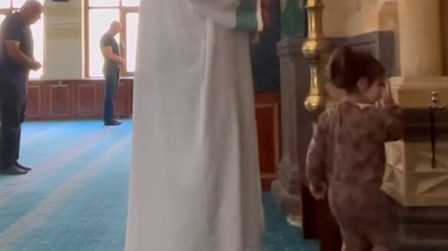 Karlıoğlu Camii imamı Ömer Faruk Altun, görev başında küçük kızıyla birlikte objektif karşısına geçti. Annesi çalıştığı için vakit namazında babasına eşlik eden minik misafir, cemaat arasında dolaşıp camiyi keşfederken yüzleri gülümseten anlar ortaya çıktı. İzleyenlerin yüzünde tebessüm bırakan anlar kısa sürede büyük beğeni topladı.