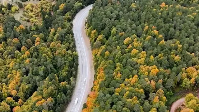 Kütahya ile Bursa sınırında yer alan Domaniç Dağları, sonbaharın gelişiyle birlikte adeta renklerin dans ettiği bir tabloya dönüştü. Sarı, kahverengi ve yeşilin iç içe geçtiği ormanlar, doğaseverlere görsel bir şölen sunuyor. Yüzde 53’ü ormanlarla kaplı Domaniç, her mevsim ayrı güzelliğiyle dikkat çekiyor. Ancak sonbaharda, özellikle Kocayayla, Topuk Yayla Tabiat Parkı ve Kayıların Göç Yolu çevresi, sararan yapraklarıyla bambaşka bir atmosfere bürünüyor. Kayın, meşe ve çam ağaçlarının oluşturduğu doğa mozaiği, bu günlerde dronla havadan görüntülendi. Yeşilden sarıya, sarıdan turuncuya uzanan tonlar, Domaniç Dağları’nı kartpostallık bir manzaraya çevirdi.