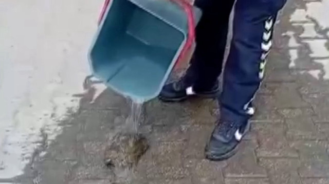 Tokat'ın Erbaa ilçesinde duyarlı trafik polisleri, yanan otların arasından kurtardıkları kaplumbağayı su ile serinletti. O anlar cep telefonu kamerasıyla kaydedildi.