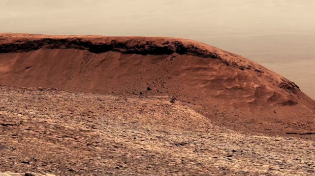 ABD Havacılık ve Uzay Ajansı (NASA), Mars'taki keşif aracı Curiosity'nin Gale Krateri'nde bulunan Sharp Dağı'nın eteklerinde çektiği panoramik görüntüyü kamuoyuyla paylaştı. NASA'nın sosyal medya hesabından yapılan paylaşımda, bazı bilim insanları tarafından eski bir nehrin kurumuş yatağı olduğu düşünülen Sharp Dağı üzerinde ilerleyen Curiosity Gezgini'nin çektiği 30 saniyelik görüntüye yer verildi. Gale Krateri'nin 5 kilometre üzerinde yükselen dağın eteklerinde kaydedilen videoda, milyarlarca yıl önce meydana geldiği düşünülen kraterlerin oluşturduğu tepeler görüldü. Paylaşımda, "Sessiz, ince rüzgarı, hatta belki de eski bir kıyıya vuran, çoktan gitmiş bir gölün dalgalarını hayal edebilirsiniz." ifadesi kullanıldı.