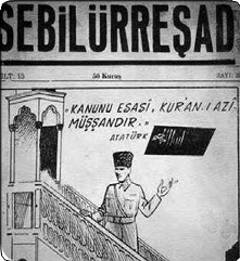 1920-23 aralığındaki bu “dinci" söylem ile sonrasındaki “dinsiz" söylem arasındaki farkın izahı nasıl yapılmalı? Mustafa Kemal 1923'de Kur'an-ı Kerim'in Hak Kitap olduğunu bir din adamı edasıyla savunurken 1937 yılı Meclis açış konuşmasında “Gökten indiği sanılan kitaplar" sözüyle ve 1931'de gözetiminde basılan Tarih II adlı kitapta “Kur'an, Muhammed'in fikirlerini topladığı kitaptır" cümlesiyle 180 derece dönerken, sözünden dönmeyen Akif ile Karabekir'in tasfiye edilip susturulmasında şaşılacak bir taraf yoktur.
