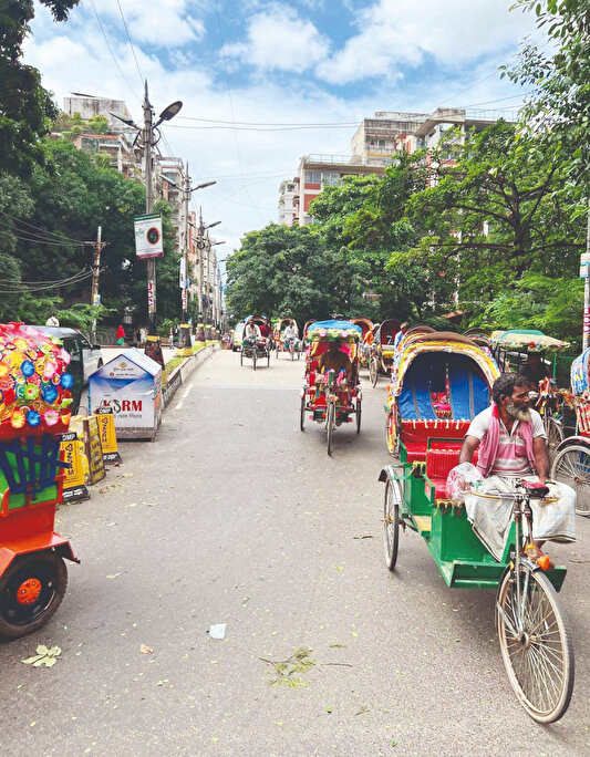 Rikşaların şehrin bütün cadde ve sokaklarında oluşturduğu görüntü Dakka’nın karakteristik manzarasını oluşturuyor.